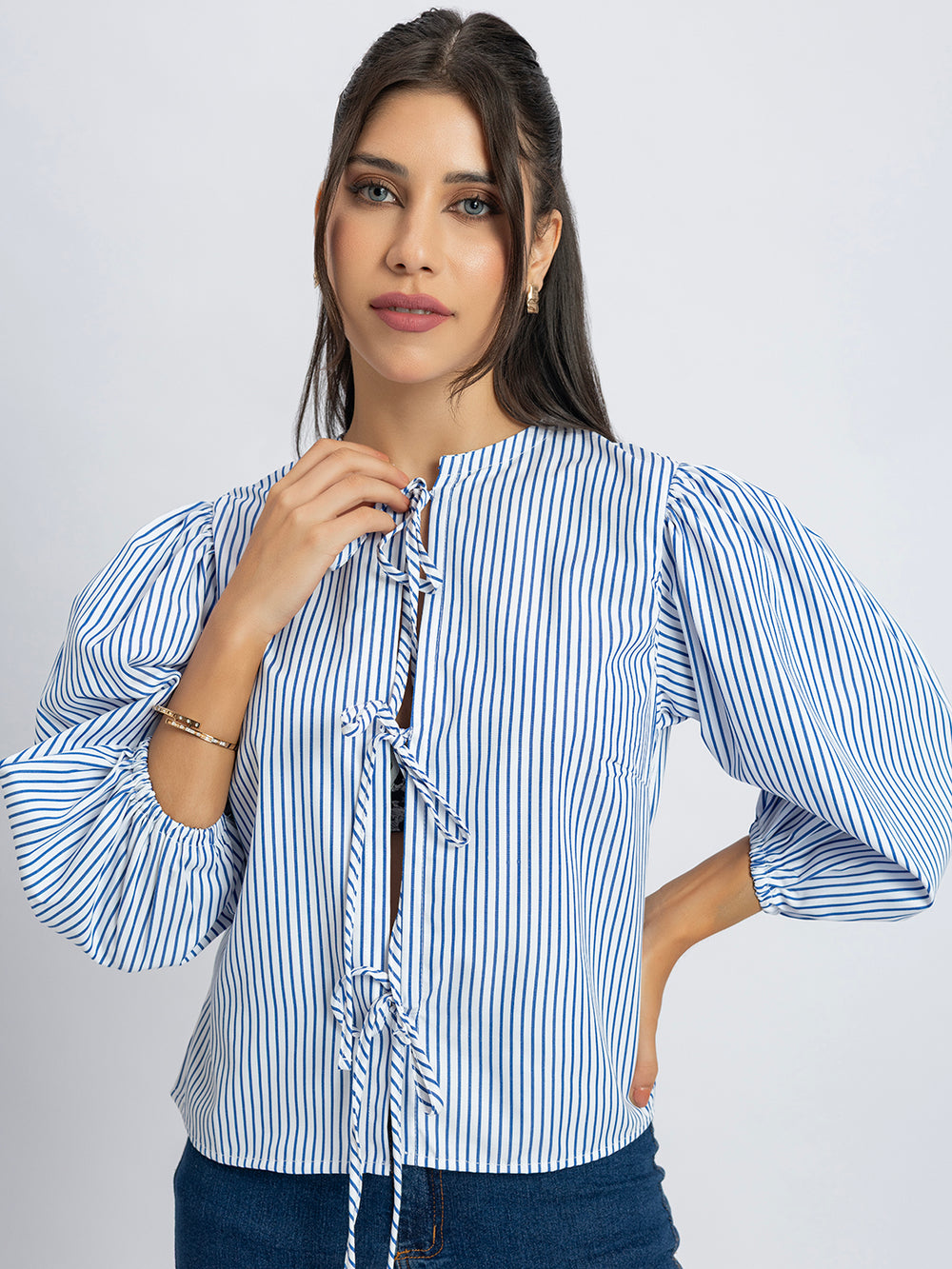Lounge Dreams Blue Poplin Cotton V-Neck Top