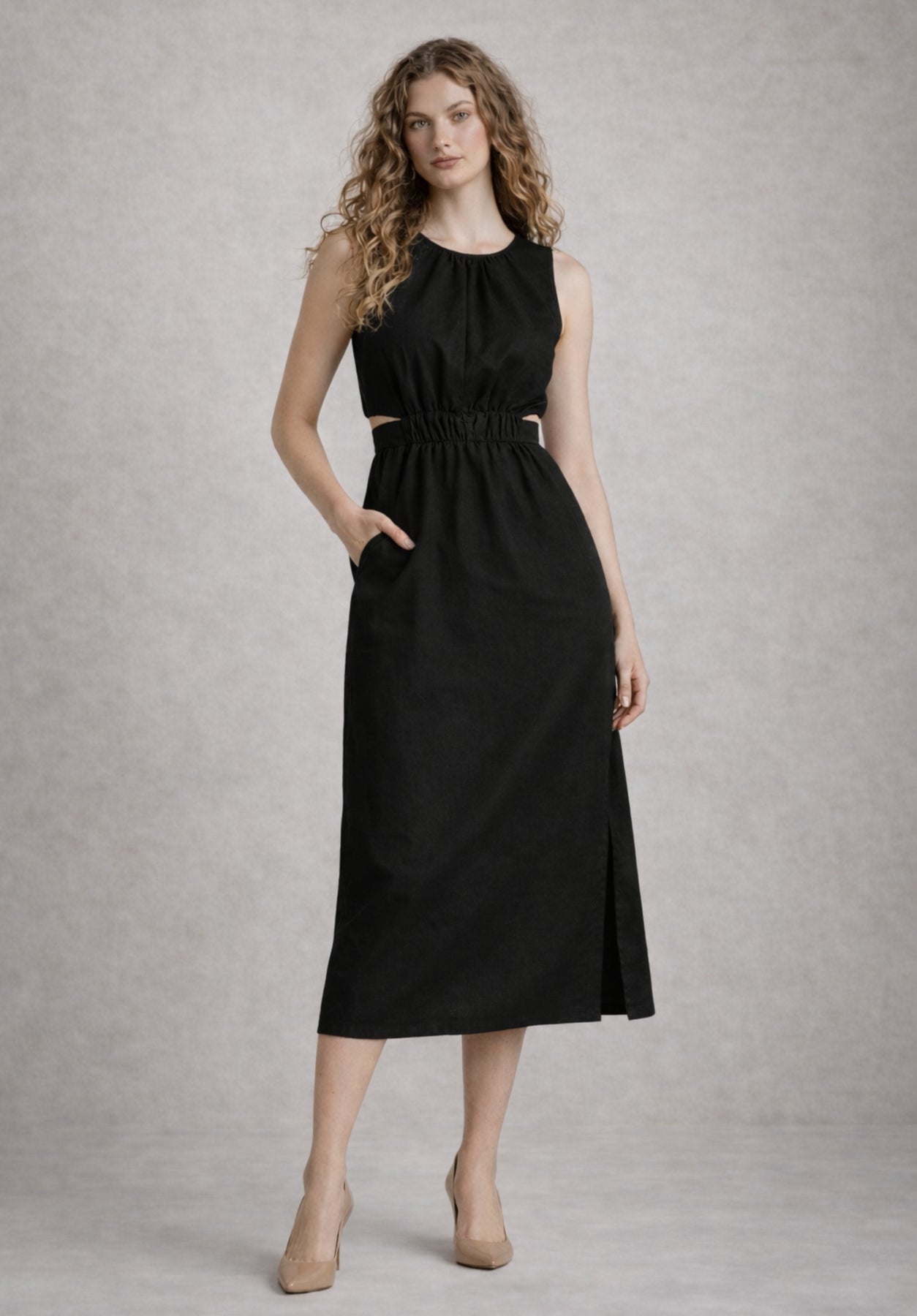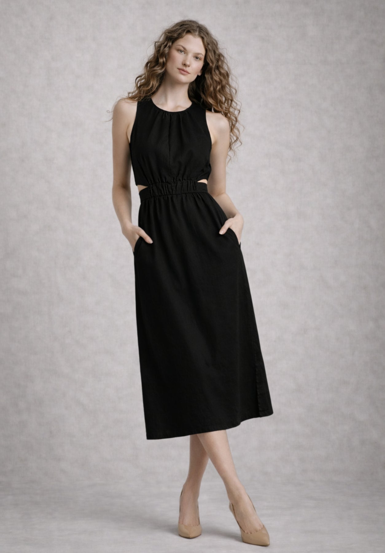 Effortless elegance meets everyday comfort in this black pure cotton A-line dress. Crafted from breathable cotton poplin, the fitted bodice and flared skirt create a flattering silhouette that moves beautifully. Classic shirt collar and button-down front add tailored sophistication, while the gathered waist provides gentle volume through the hips. Versatile enough for casual brunches or semi-formal occasions, style it with heels for polish or sneakers for relaxed charm. A wardrobe essential that transitions seamlessly from day to night.