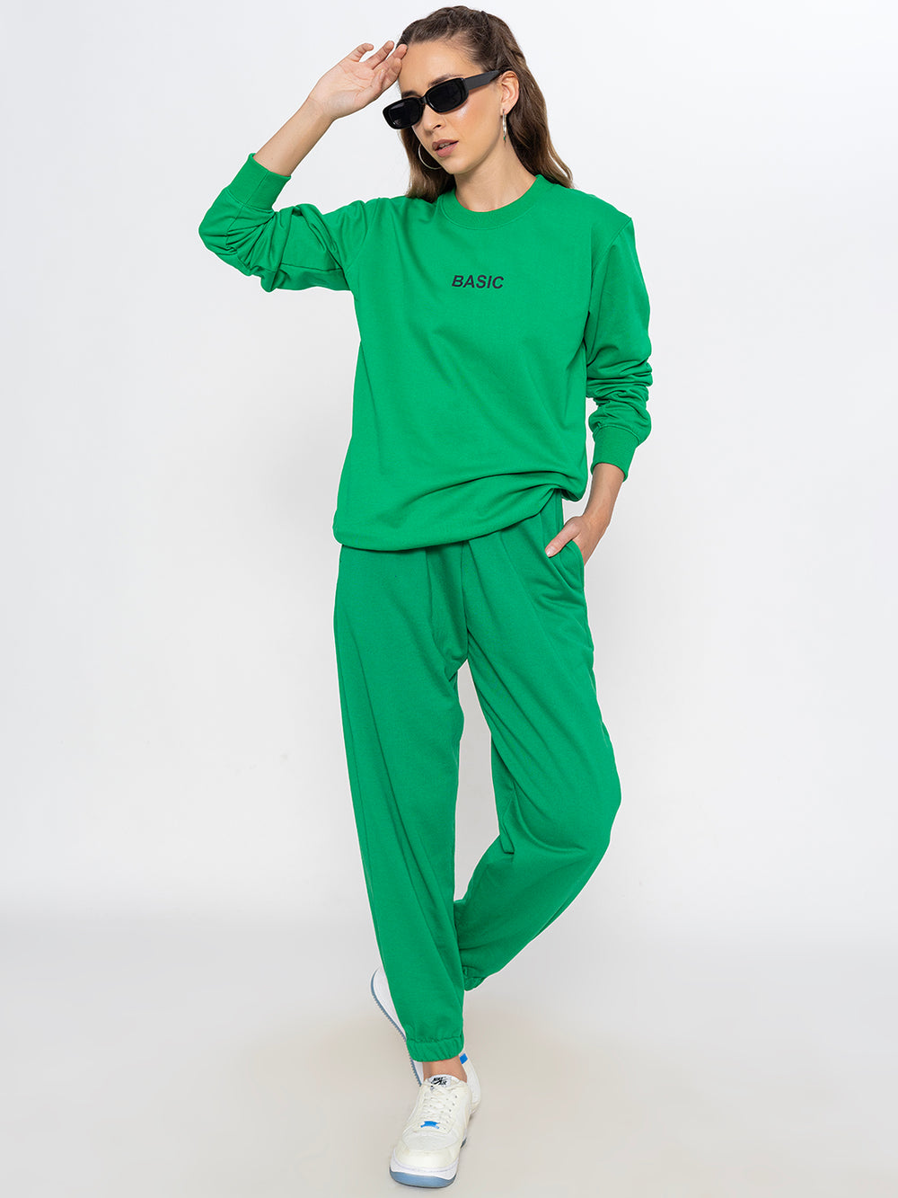 Green Basic Sweatshirt Jogger Co-ord Set