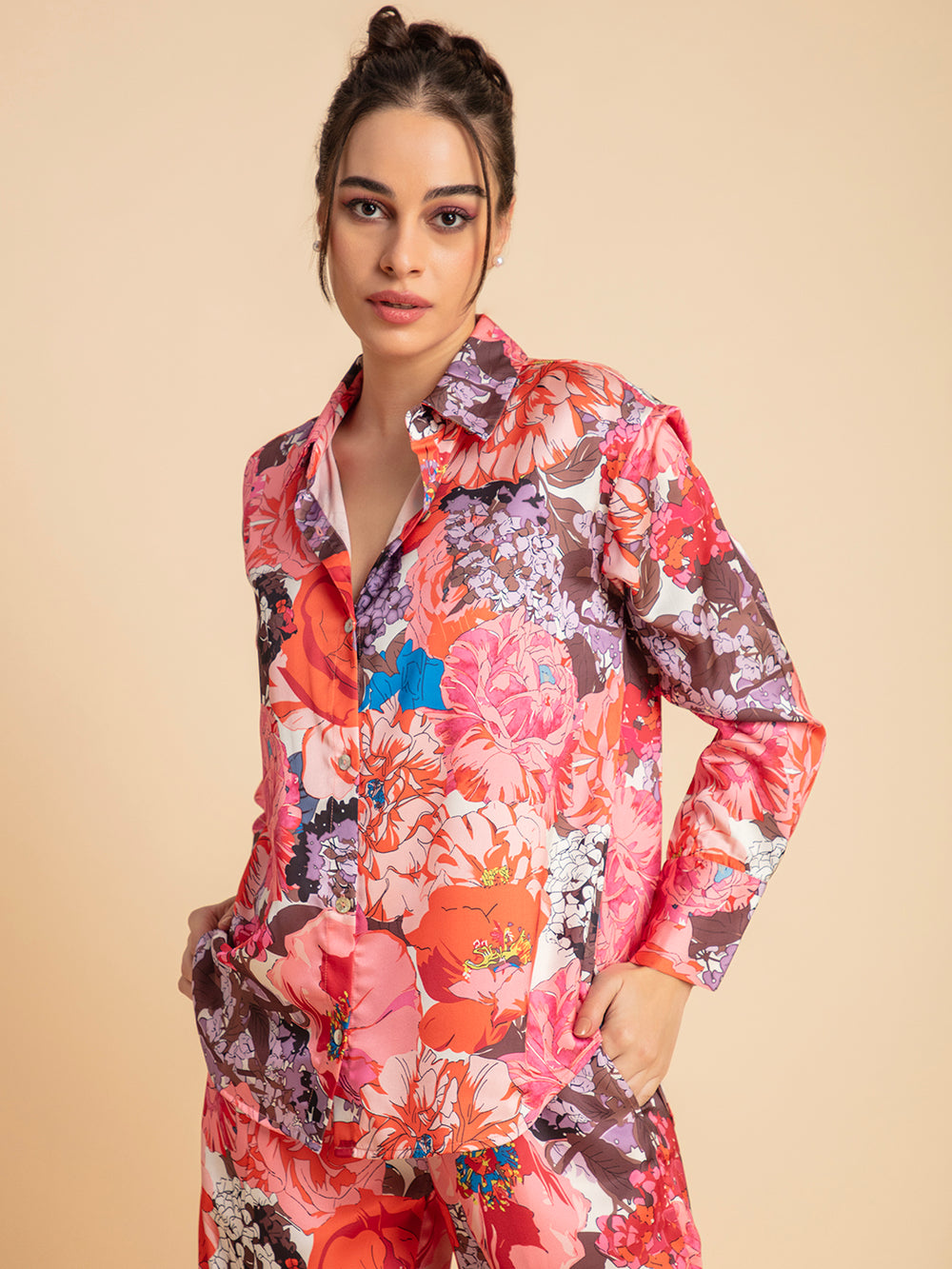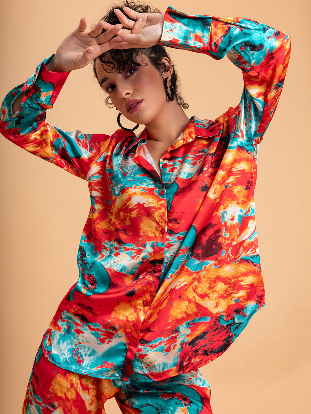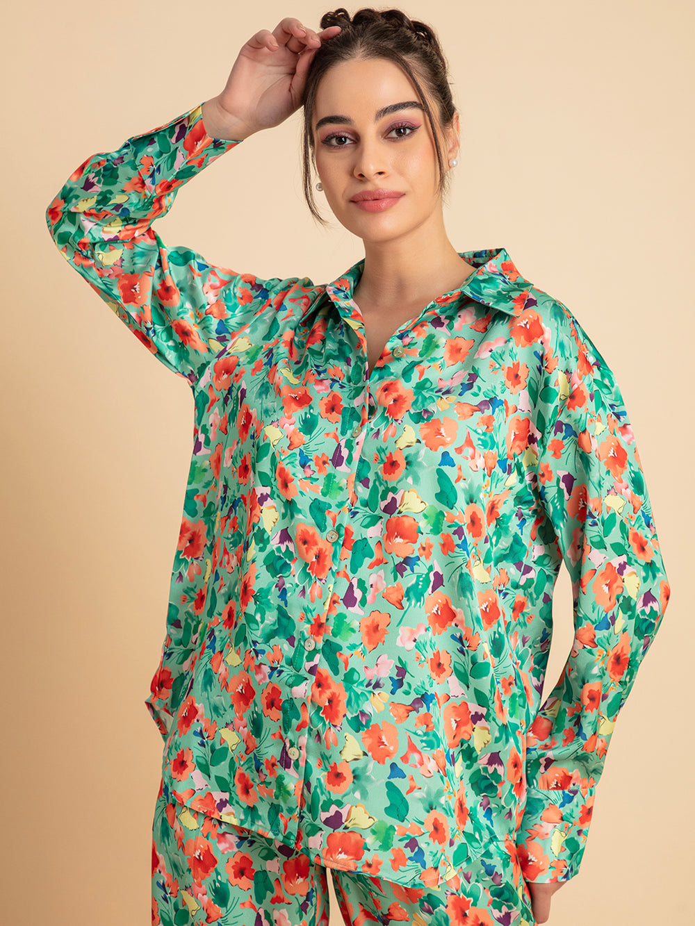 Multicolor Printed Satin Co-ords