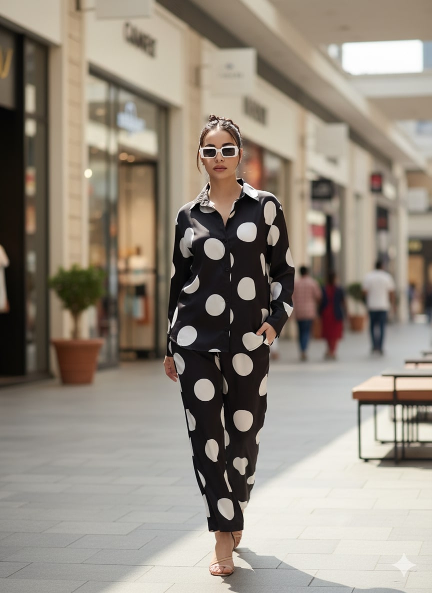 Polka Dot Verona Printed Satin Co-ord Set